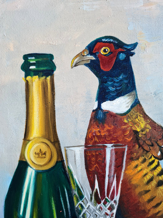 Wildlife and Wine Pheasant 50x50 cm Original Oil Painting on Canvas from Daniella Szabò-Telek