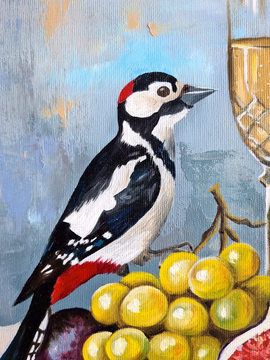 Wildlife and Wine Woodpecker 50x50 cm Original Oil Painting on Canvas from Daniella Szabò-Telek