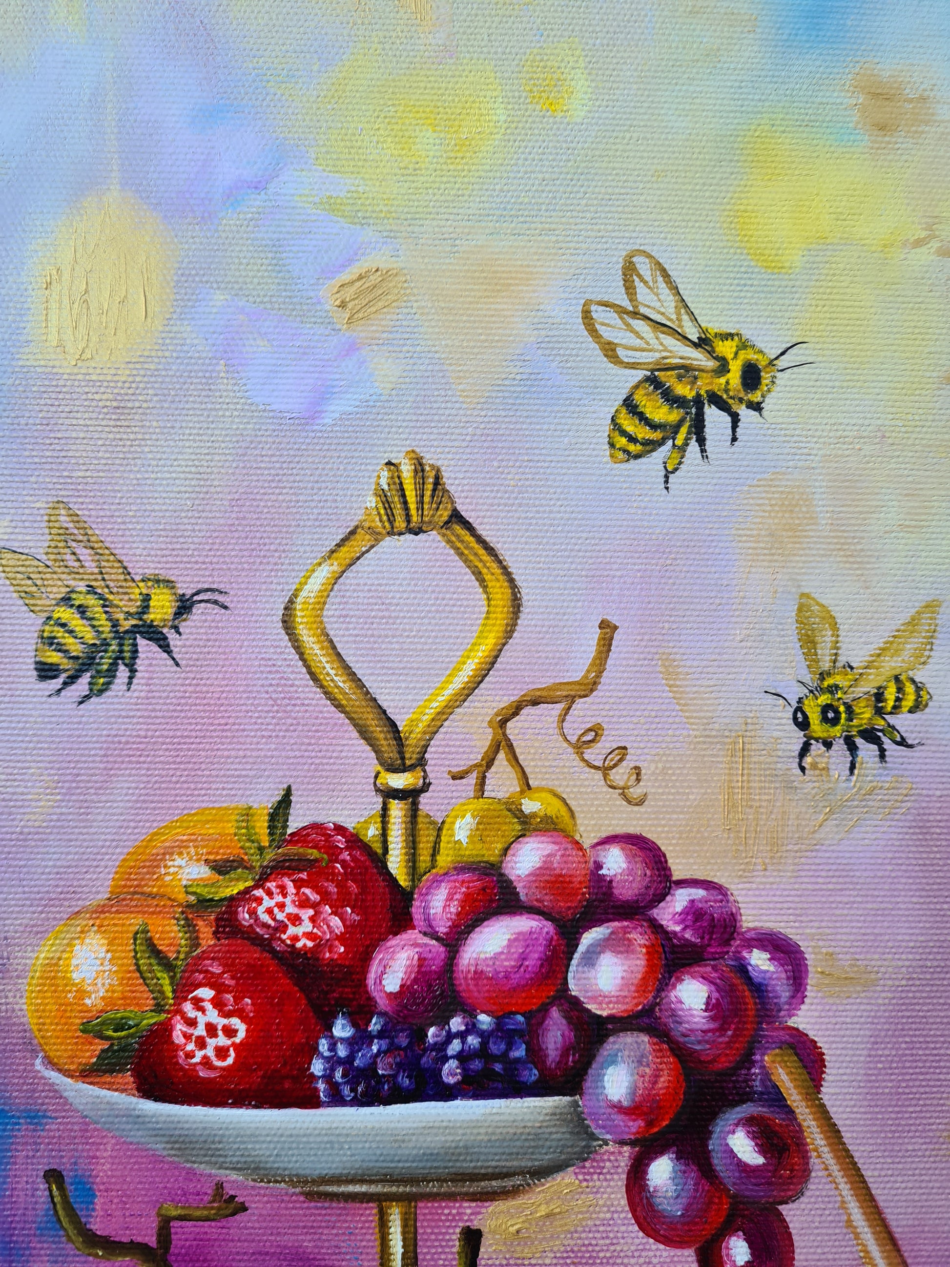 Honney bees, 50x50cm original oil painting by Daniella Szabò-Telek