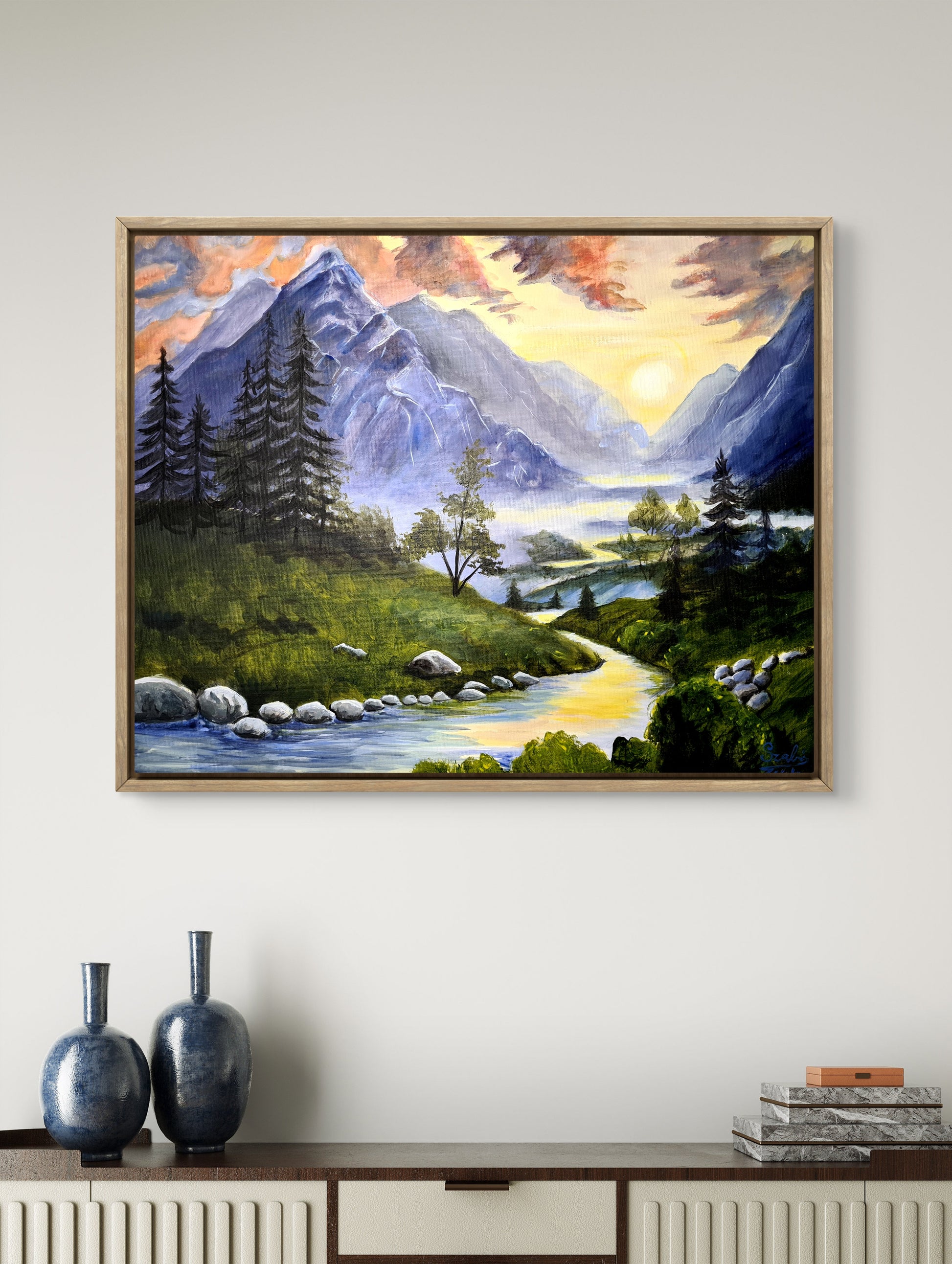 Golden river in the Alps 40x50 cm Original Acrylic Painting by Daniella Szabó-Telek